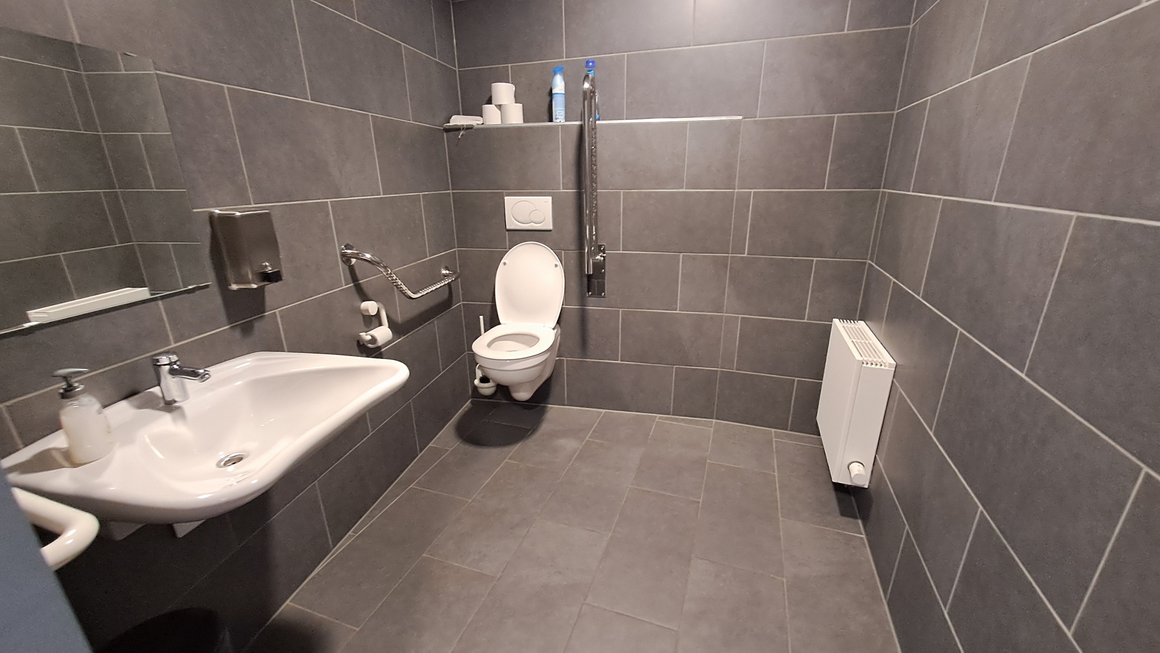Behindertengerechtes WC im Zwischengeschoss.