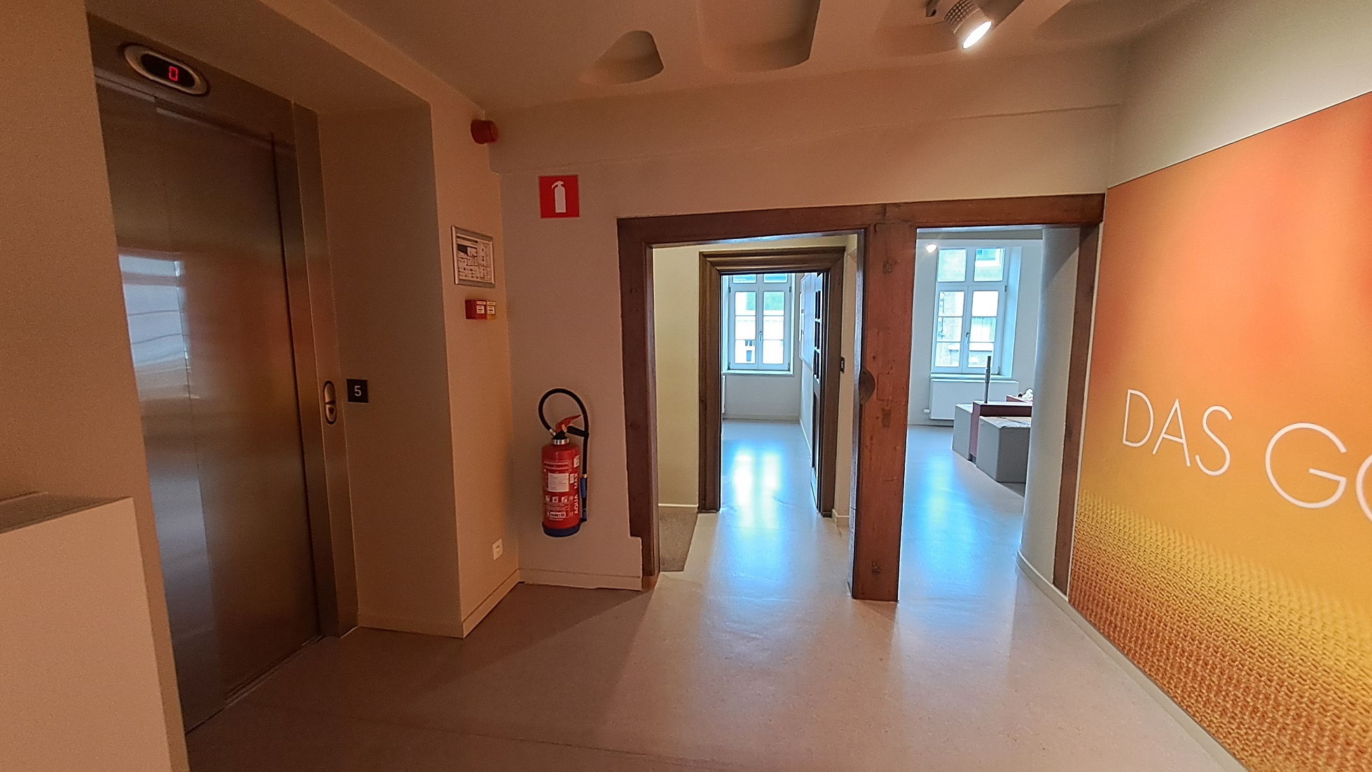 Aufzug zu allen Etagen und klappbare Hocker stehen zur Verfügung.