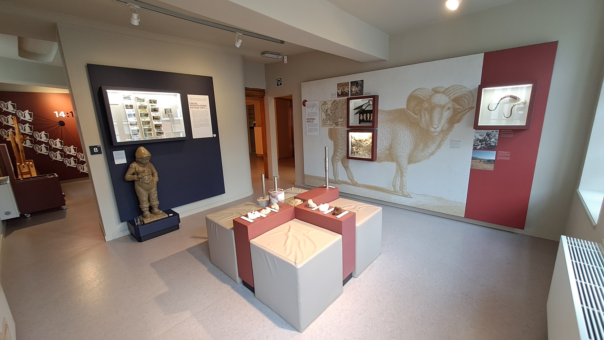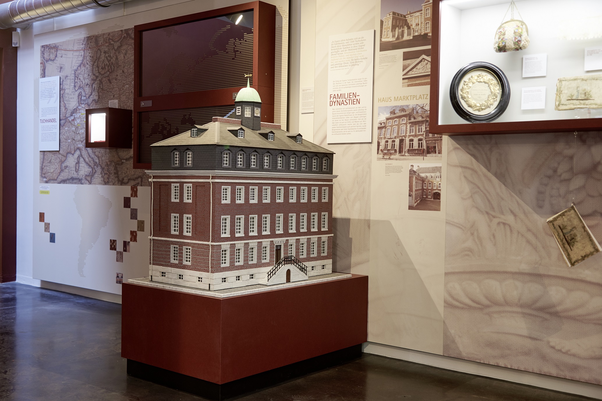 Entdecken, lernen und Spaß haben – Das Museum entführt Sie in die Blütezeit der Stadt Eupen. Im 18. Jahrhundert verwandelten die Wollindustrie und der Wollhandel die Stadt Eupen in ein international bekanntes Zentrum der Tuchherstellung. Die neue Ausstellung zeigt die Auswirkungen dieser Industrie auf das tägliche Leben der Einwohner. Eine Vielzahl von Objekten veranschaulicht die Vielfalt der religiösen und folkloristischen Traditionen der Stadt. Das Museum bietet auch Wechselausstellungen, die das materielle und immaterielle Erbe der Region präsentieren. Das Kaufmannshaus De Ru's und der moderne Flügel des Museums bieten einen idealen Rahmen für kulturelle Veranstaltungen für kleine und große Besucher.