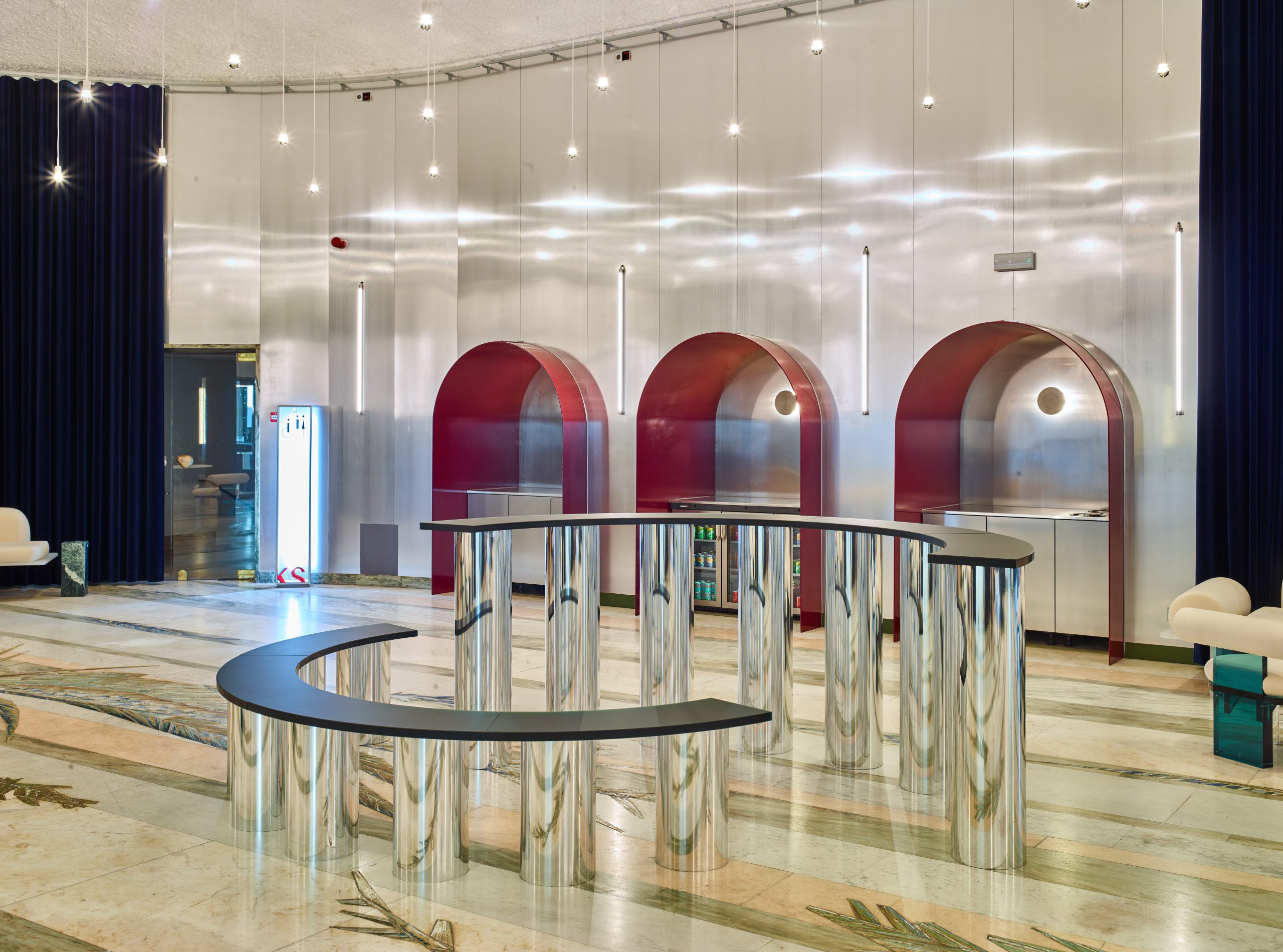 The lunch area on the ground floor was taken into account during the audit, but the layout and placement of furniture changes depending on the event and the type of catering chosen.