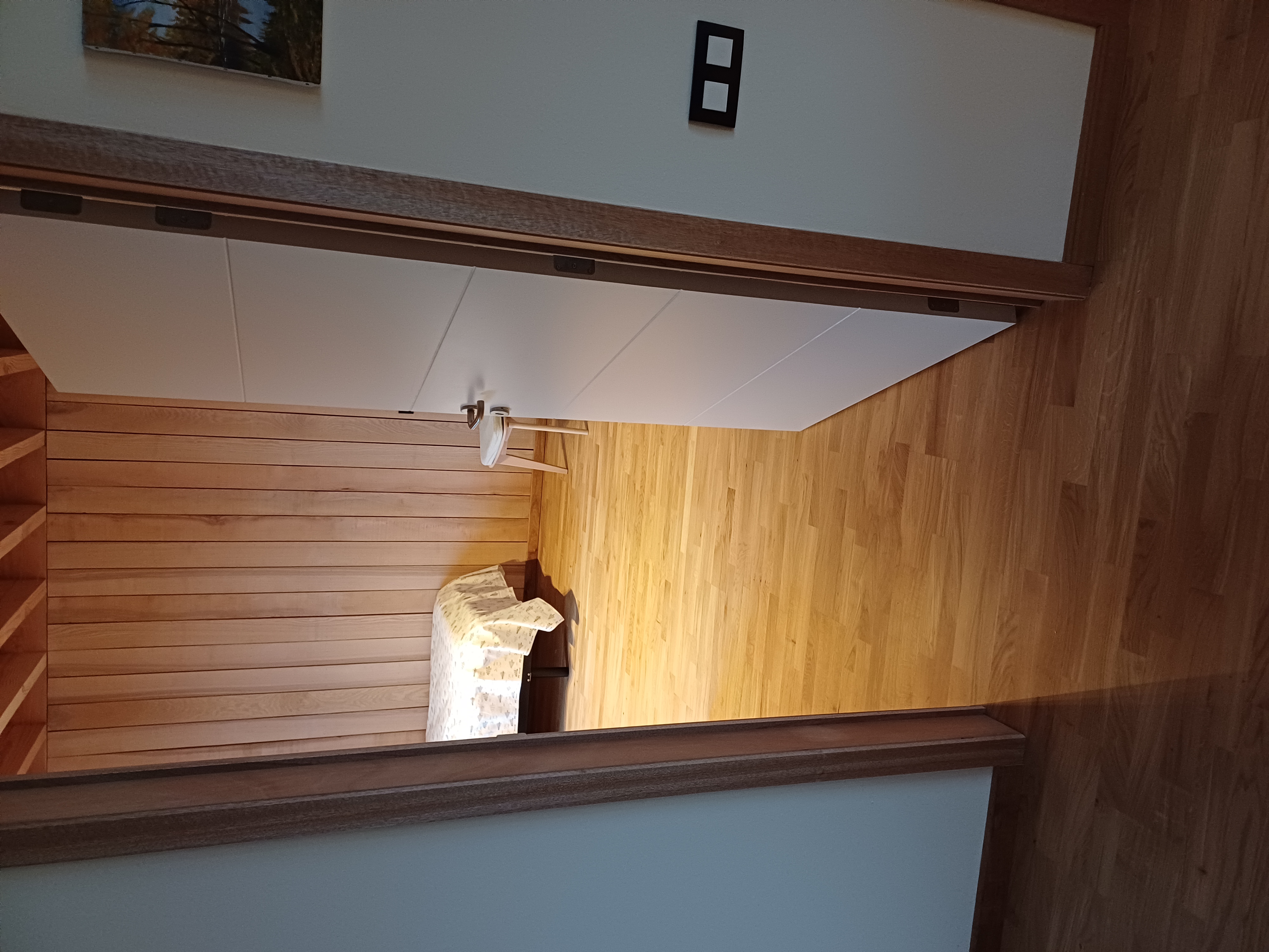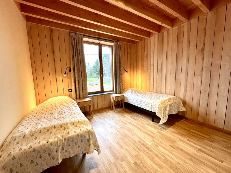 À l'étage : grande chambre avec lits jumeaux, salle de douche et WC séparé.