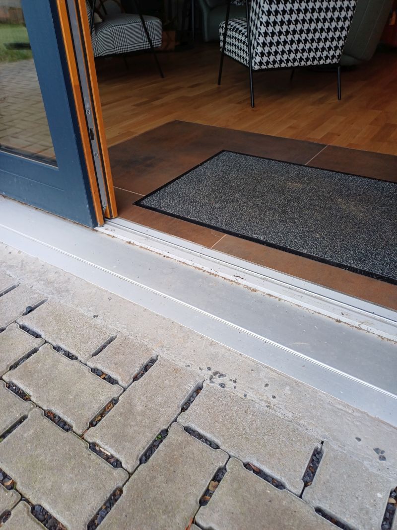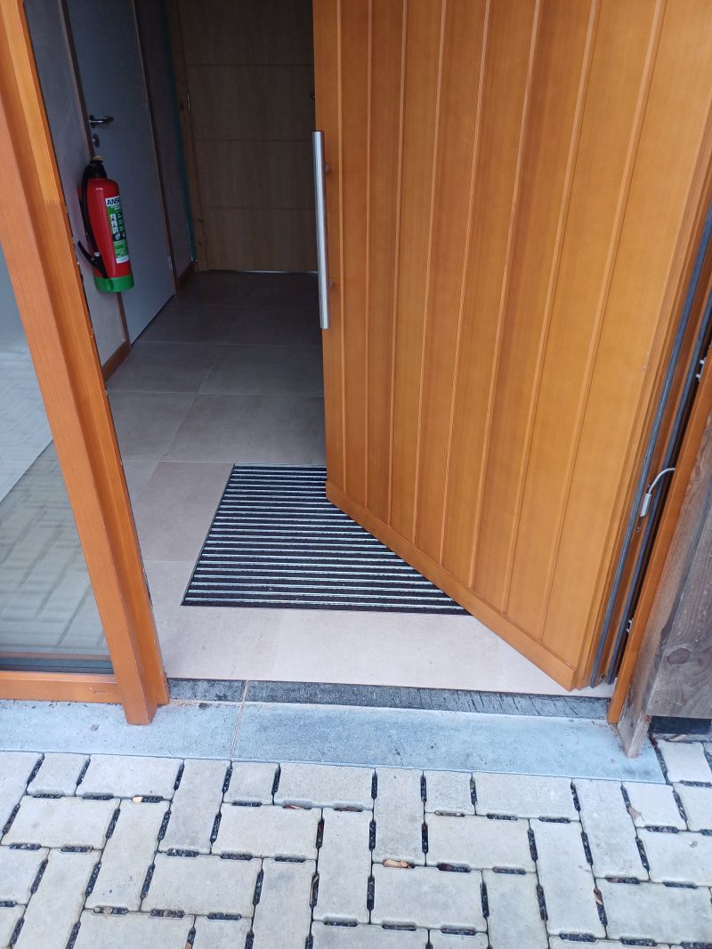 Il n'y a pas de marche à l'entrée ni pour accéder à la terrasse.