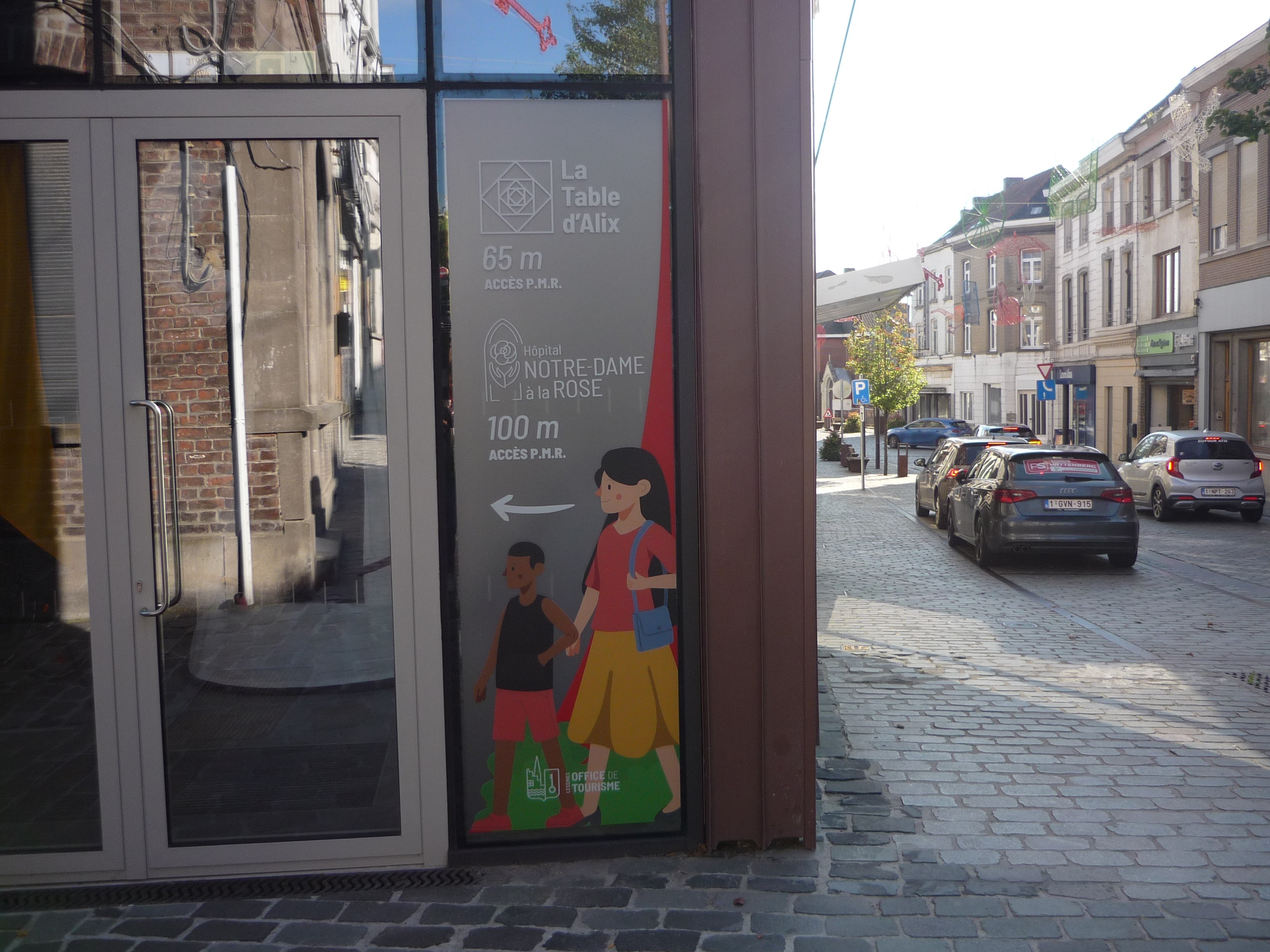 • L'œuvre dans la cour de l'Hôtel de Ville peut poser problème en termes d'accessibilité (QR-code à scanner).