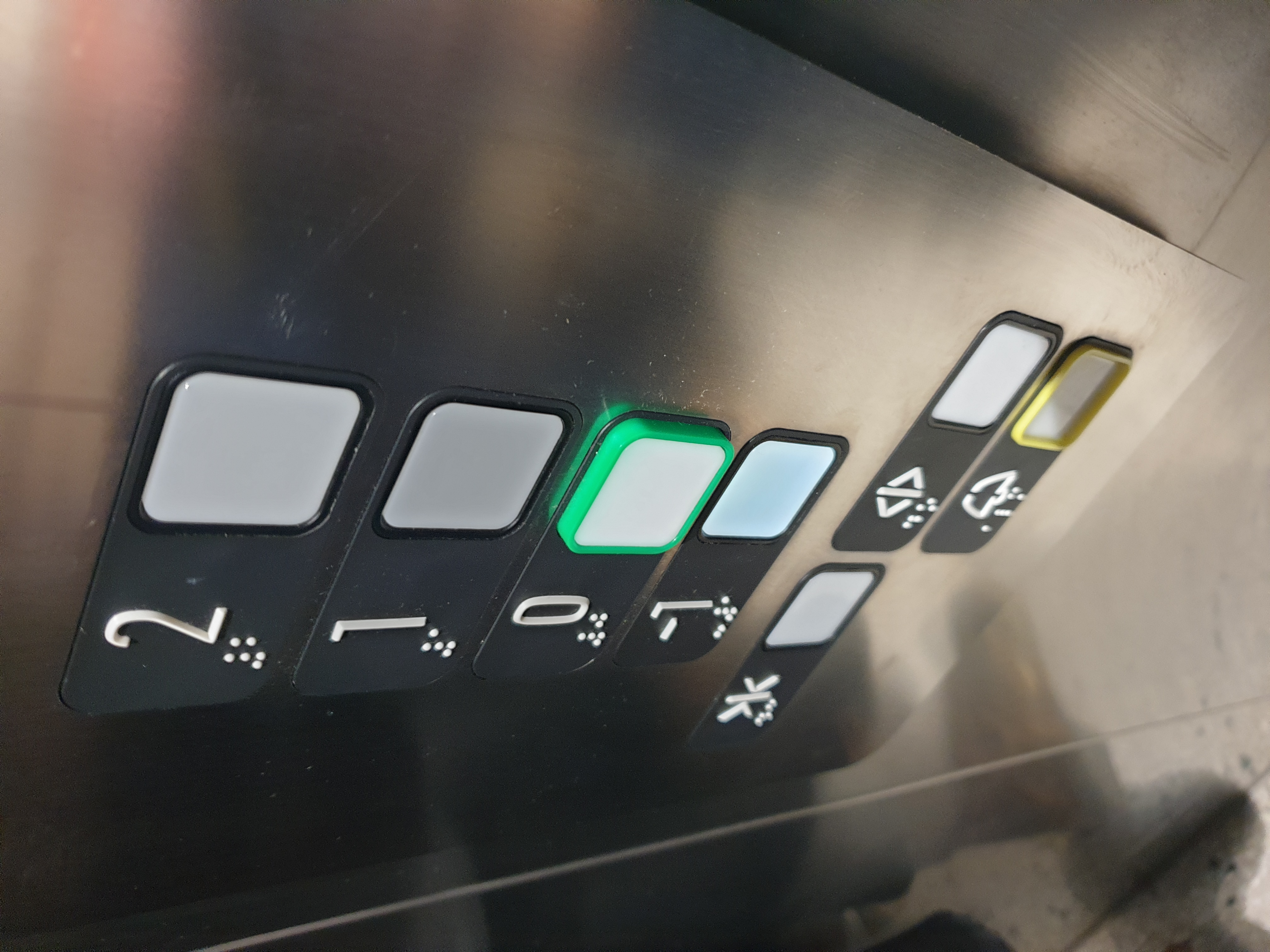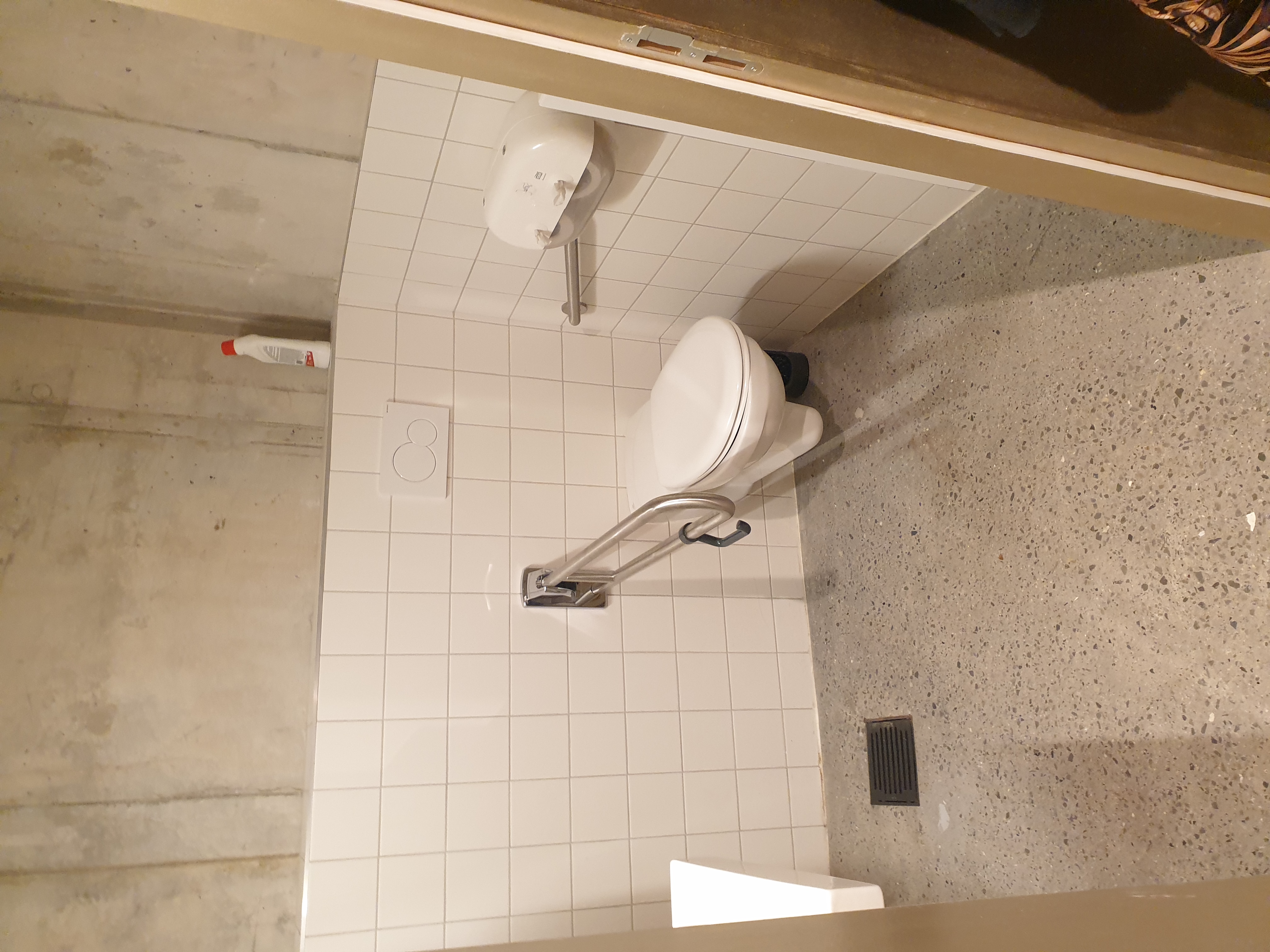 - À l'entrée principale, il y a une marche et un seuil incliné à plus de 20%, ce qui la rend difficilement accessible pour les personnes à mobilité réduite.
