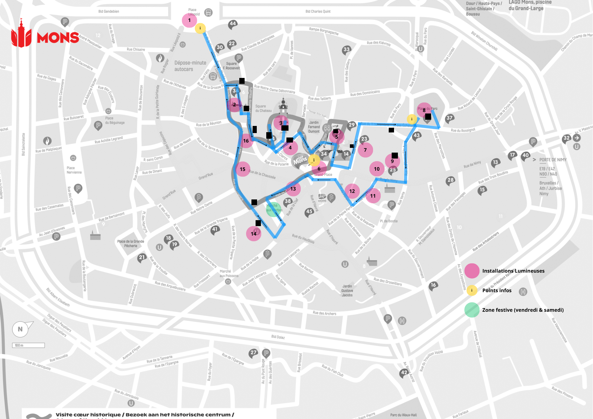 Point de départ et d’arrivée si vous souhaitez faire l'entièreté du parcours : Place Léopold, Mons.