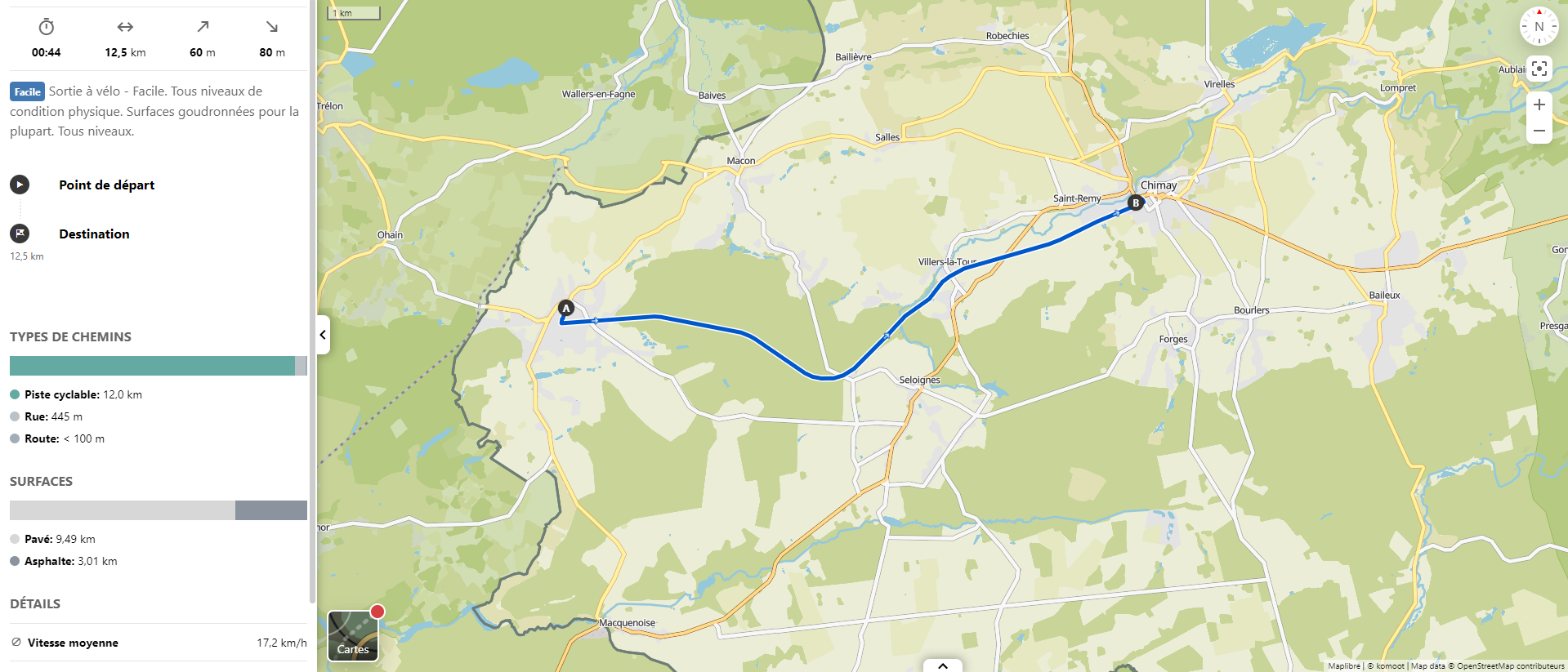 Afstand Momignies - Chimay : 13,3 km
