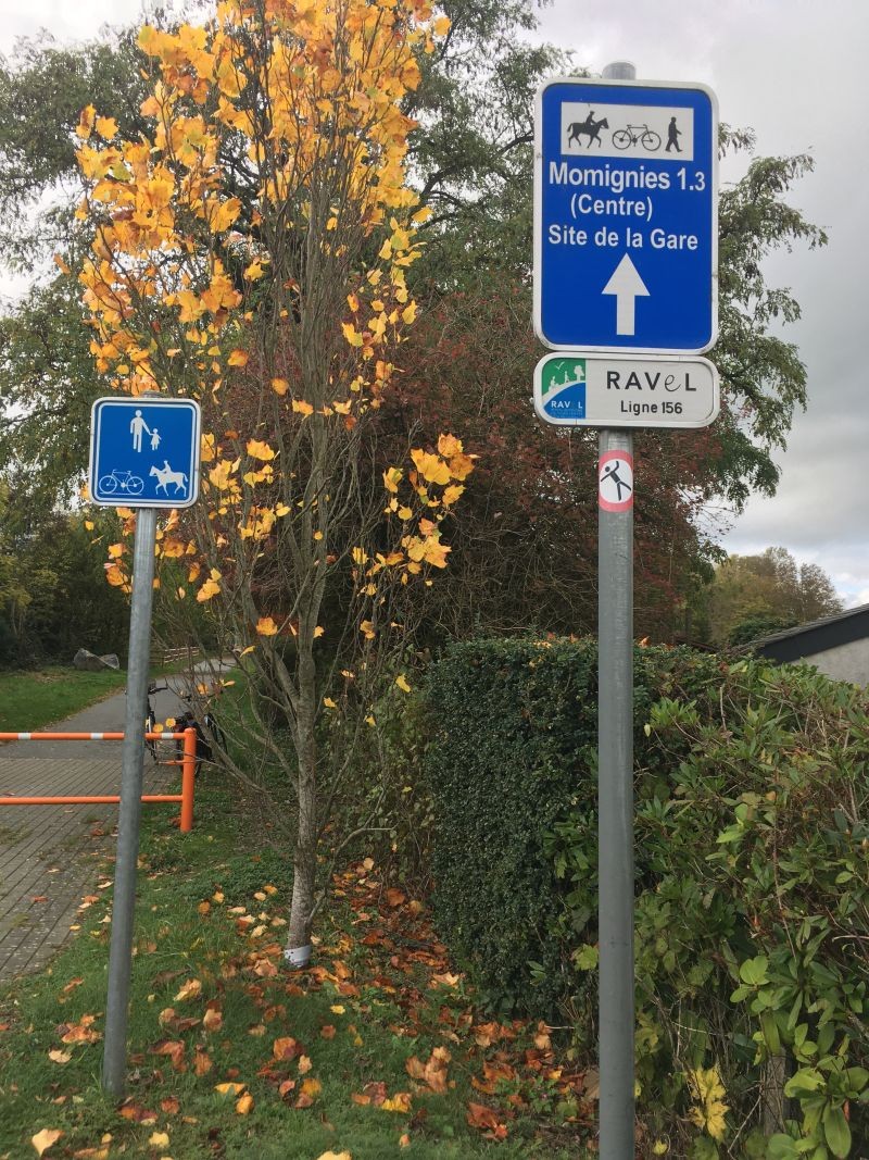Er is een gebrek aan bewegwijzering om de RAVeL te vinden bij aankomst in de stad Chimay.